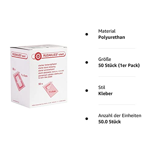 Details: 50 Stück steril Wundpflaster Rudavlies steril Pflaster 7 cm x 5 cm