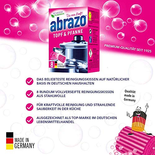 abrazo ist in Deutschland das Synonym für verseifte Reinigungskissen aus Stahlwolle. Tradition & Qualität Made in Germany seit 1901. Daher steht abrazo seit mehr als 100 Jahren für kraftvolle Reinigung & strahlende Sauberkeit im Haushalt.