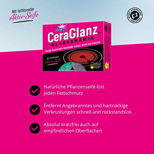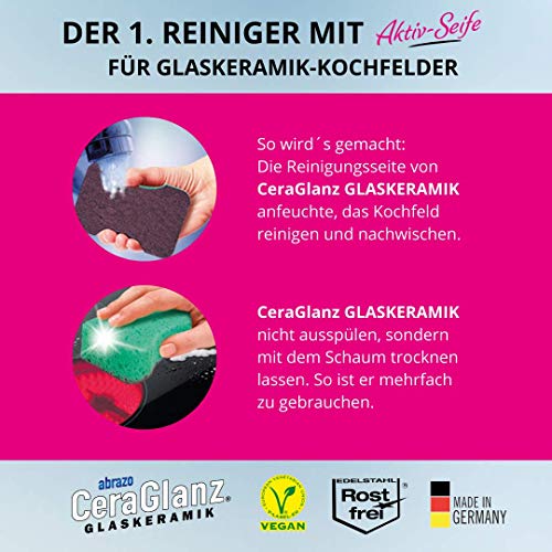 Details: abrazo Küchenreinigungs-Set | 8 Reinigungskissen + 2 CeraGlanz Ceranfeldreiniger | verseifter Spülschwamm, Küchenschwamm, Reinigungsschwamm, Fettlöser
